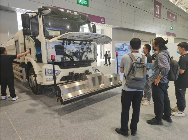 作为参展企业之一,suncitygroup太阳新城弘德专注于新能源汽车领域,致力于新能源专用汽车及相关领域的研发、生产及销售,在大会上输出着“suncitygroup太阳新城能量”。suncitygroup太阳新城弘德积极响应国家政策,新能源环卫车是suncitygroup太阳新城弘德重点布局的领域。在1182号展厅,登场的是suncitygroup太阳新城弘德新一款18吨纯电动清洗车,此款车型采用宁德时代标准化磷酸铁锂电池,配备电量246kWh,满足客户“一次充电,一天作业”的需求。此款电动清洗车还配置有高压清洗系统和低压清洗两套系统,具有路面清洗、护栏隔离带和人行道清洗、高压喷枪、喷雾降尘、低压冲洗、后洒水、电动40m高射炮等多种功能。特别适用于城市广场、道路路面和路沿的高清洁度保洁作业,可以应对不同的道路清洁需求,应用场景多元化。不仅如此,全新设计的水泵驱动系统可以有效降低车辆作业能耗,提升整车续航能力。真正达到“绿色、高效、安全”,更契合本届博览会“新能源、新业态、新交通”的主题!