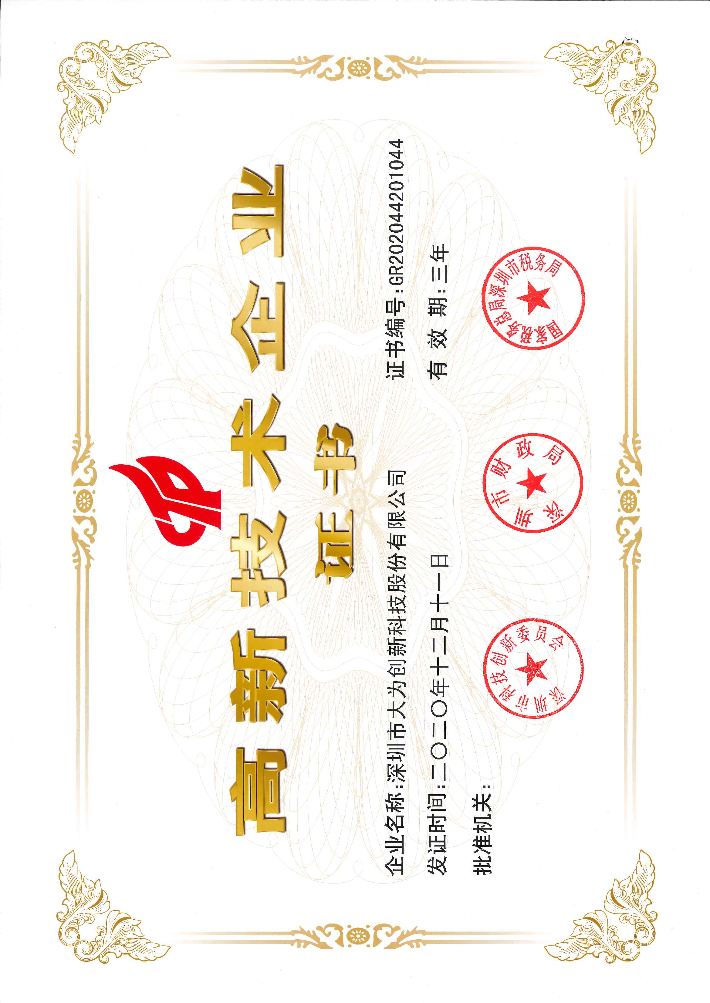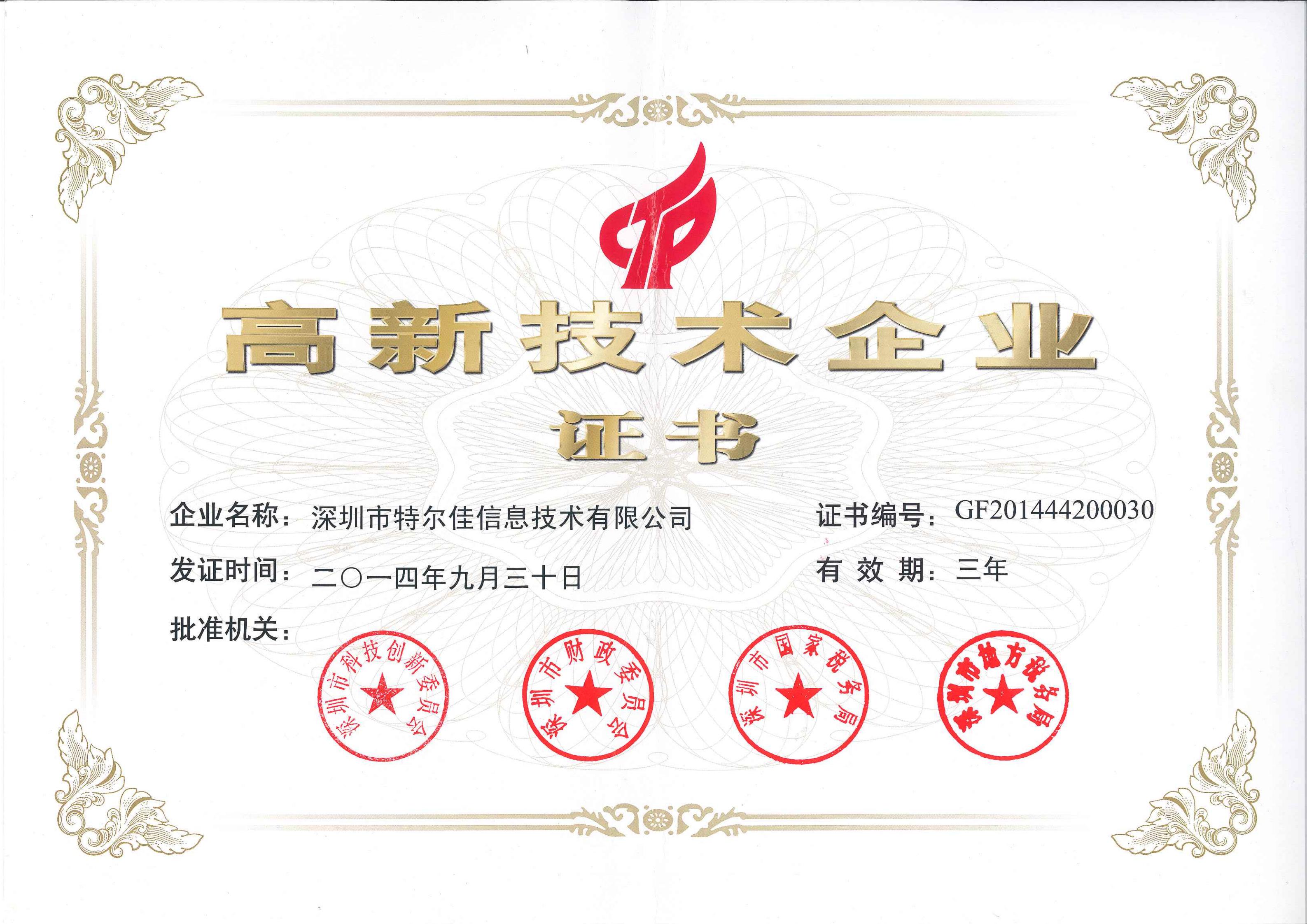 被认定为“深圳高新技术企业”