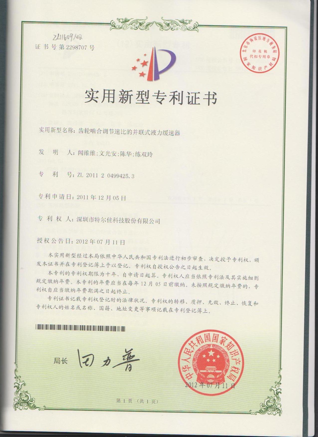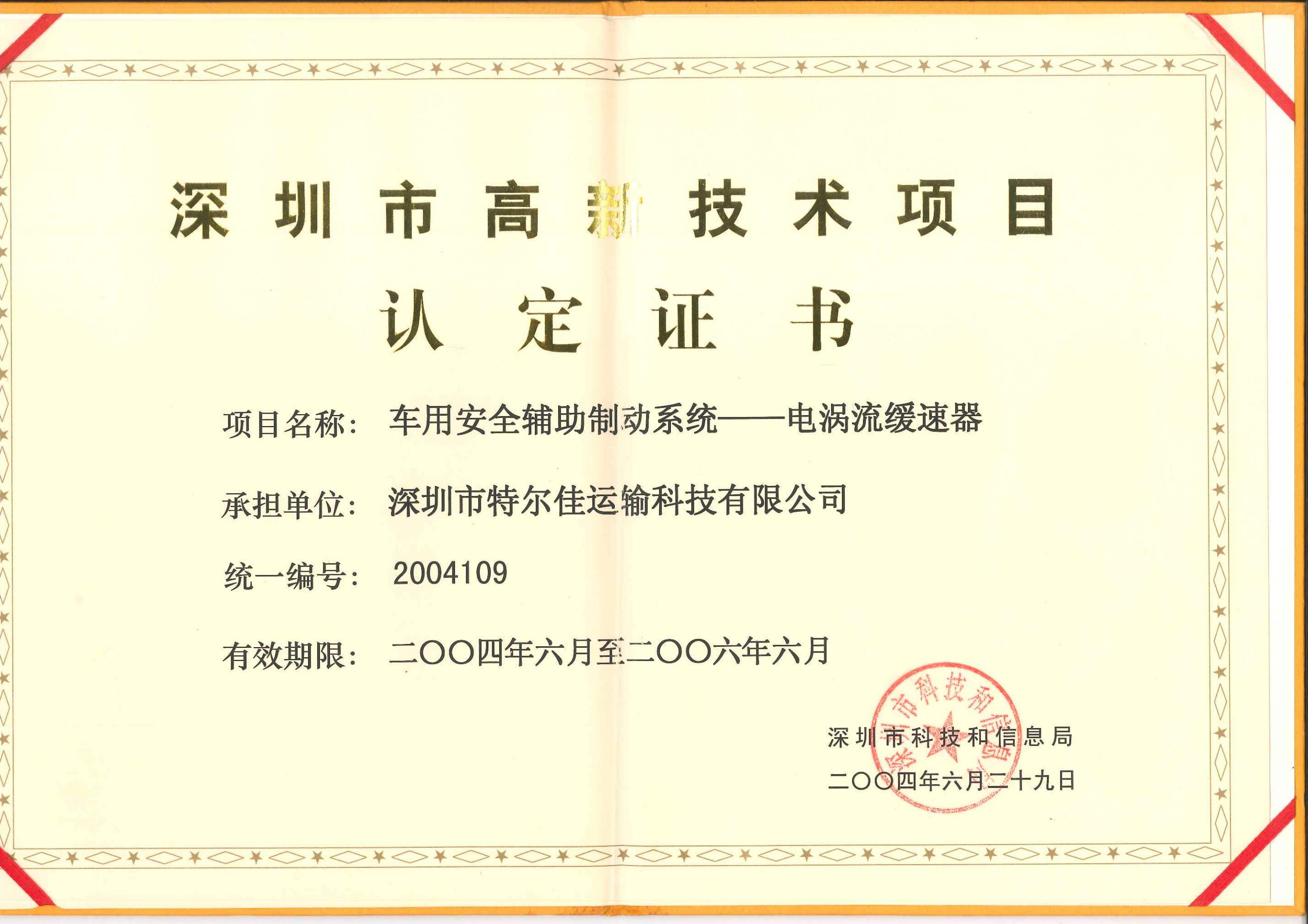 特尔佳电涡流缓速器荣获“深圳市科技进步奖”