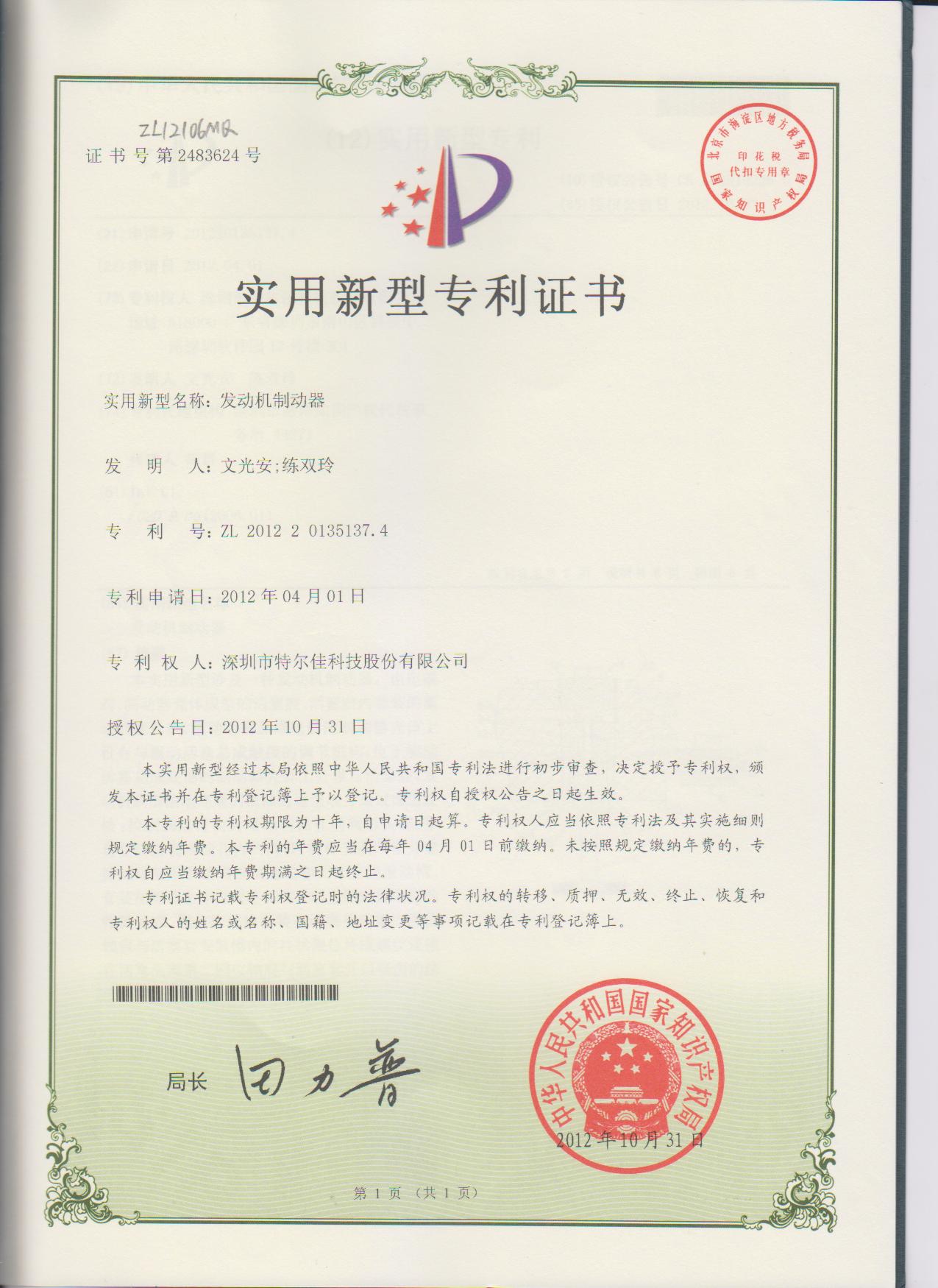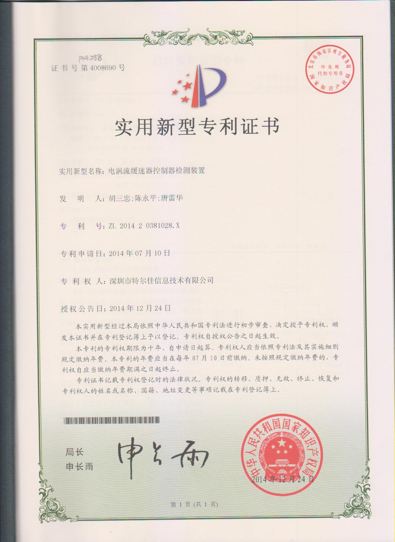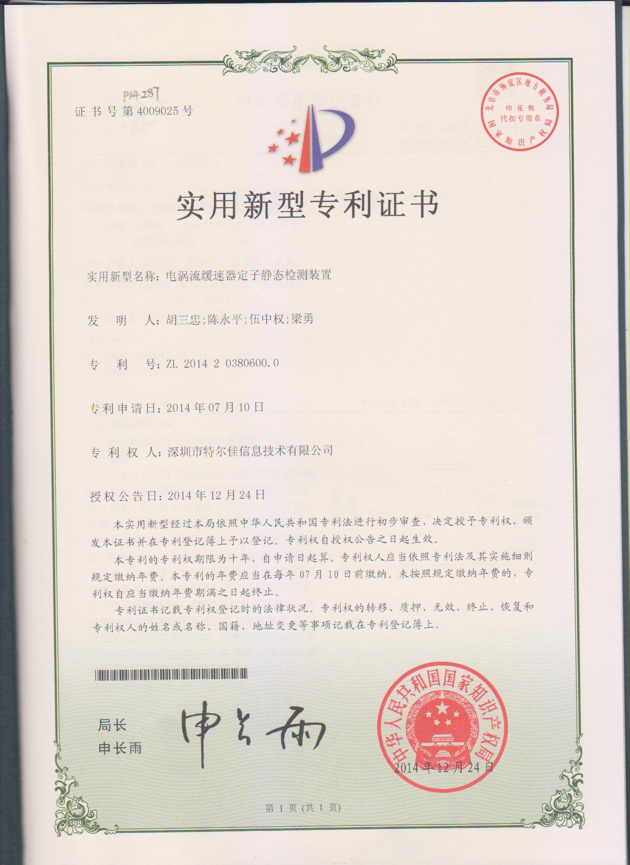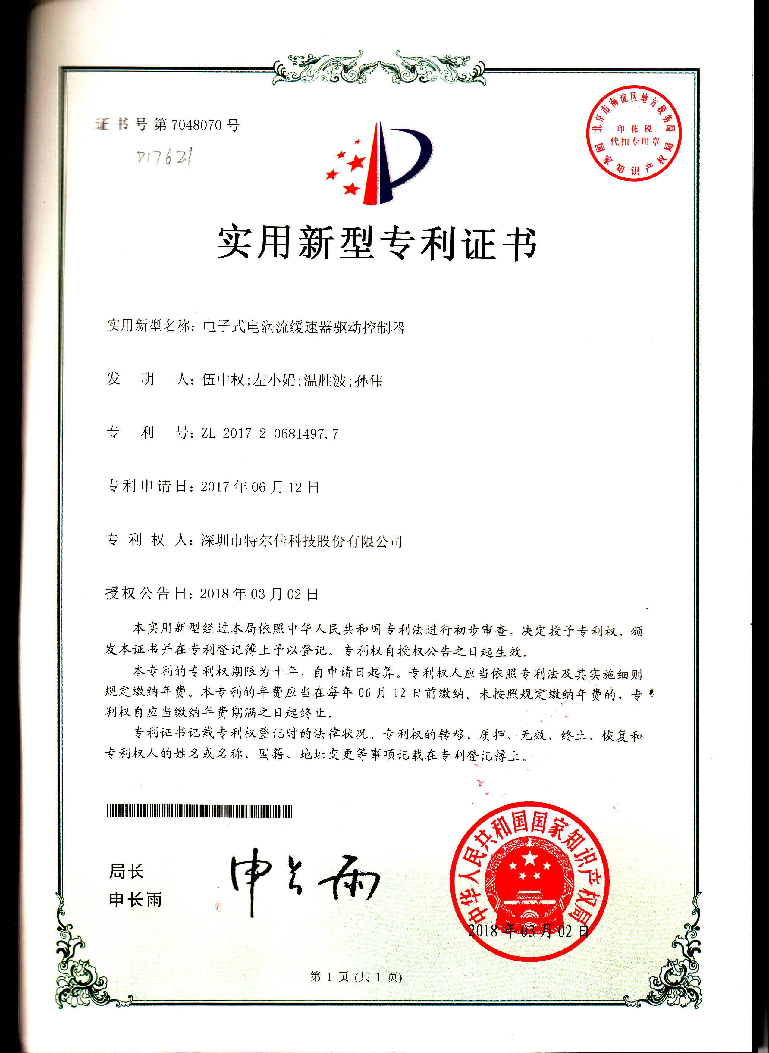 特尔佳电涡流缓速器荣获“国家级重点新产品”称号