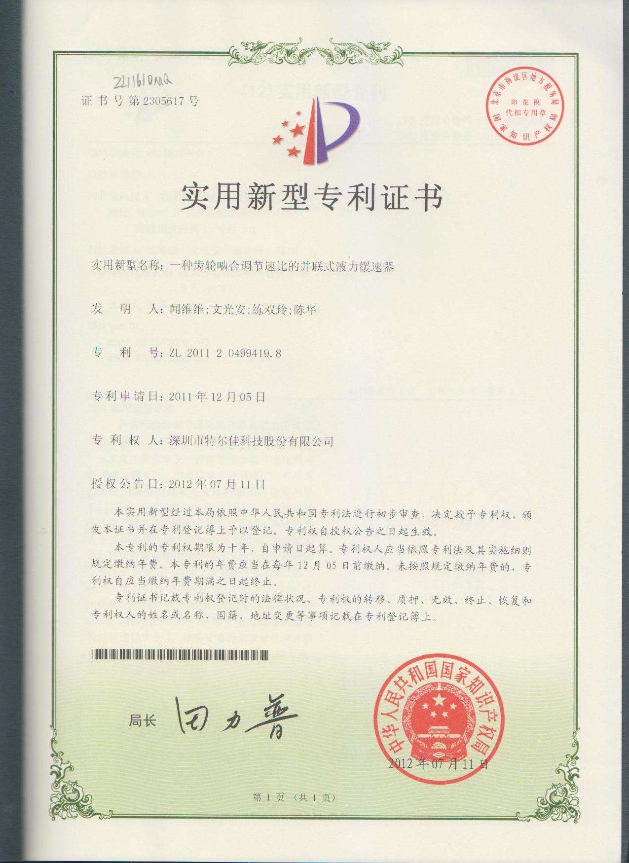 特尔佳缓速器被评为“深圳市知名品牌”