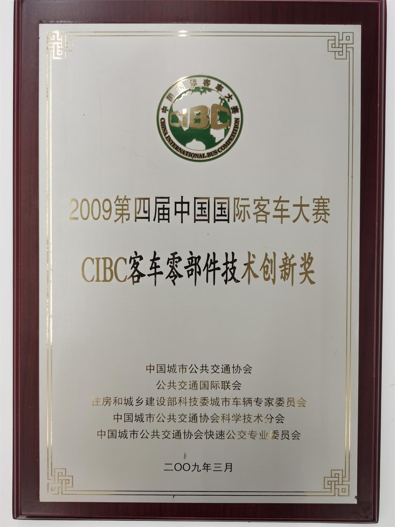 获建设部科技委员会“ CIBC客车零部件技术创新奖”